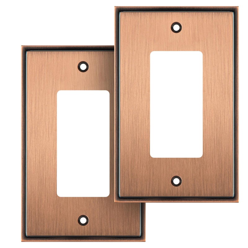 Henne Bery Soft Modern Decorative Wall Plate Switch Plate Outlet Cover (Single Decorator 2PK, Antique Copper)