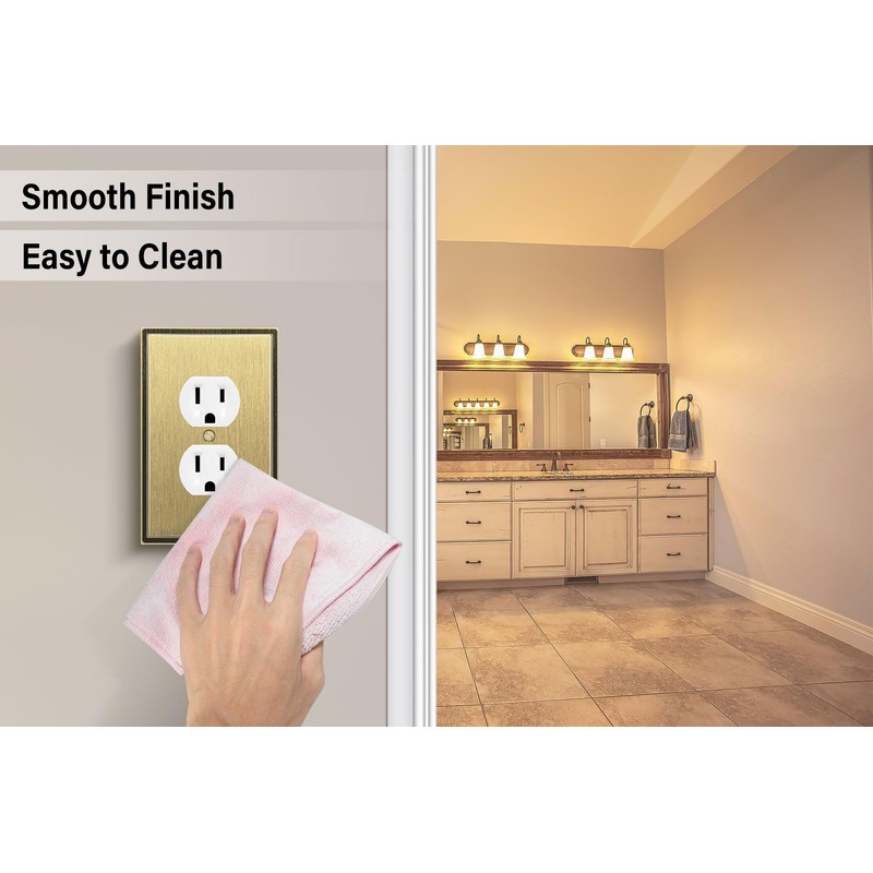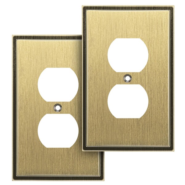 Henne Bery Soft Modern Decorative Wall Plate Switch Plate Outlet Cover (Single Duplex 2PK, Antique Brass)