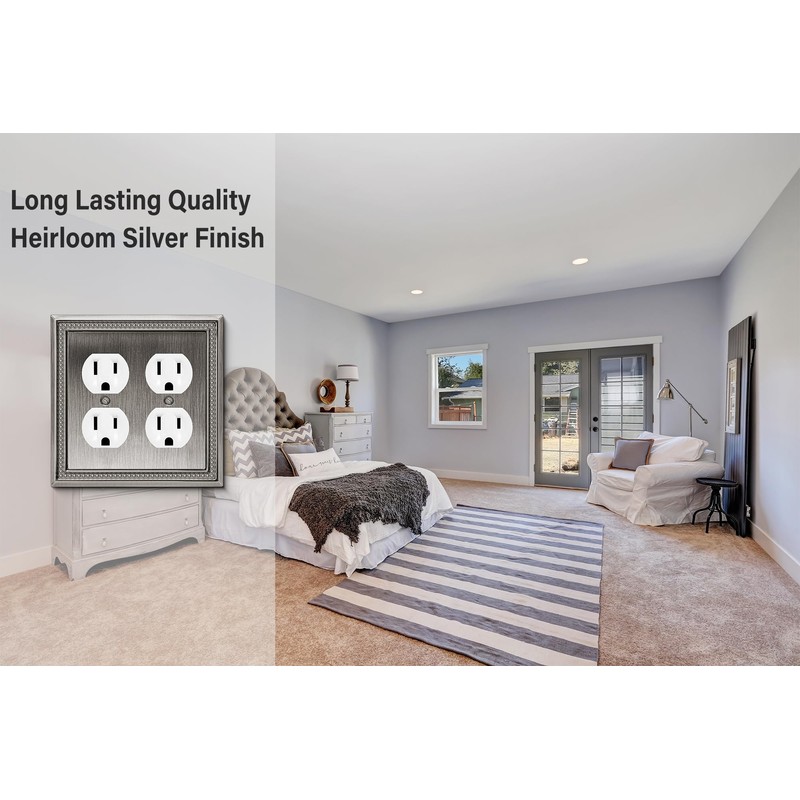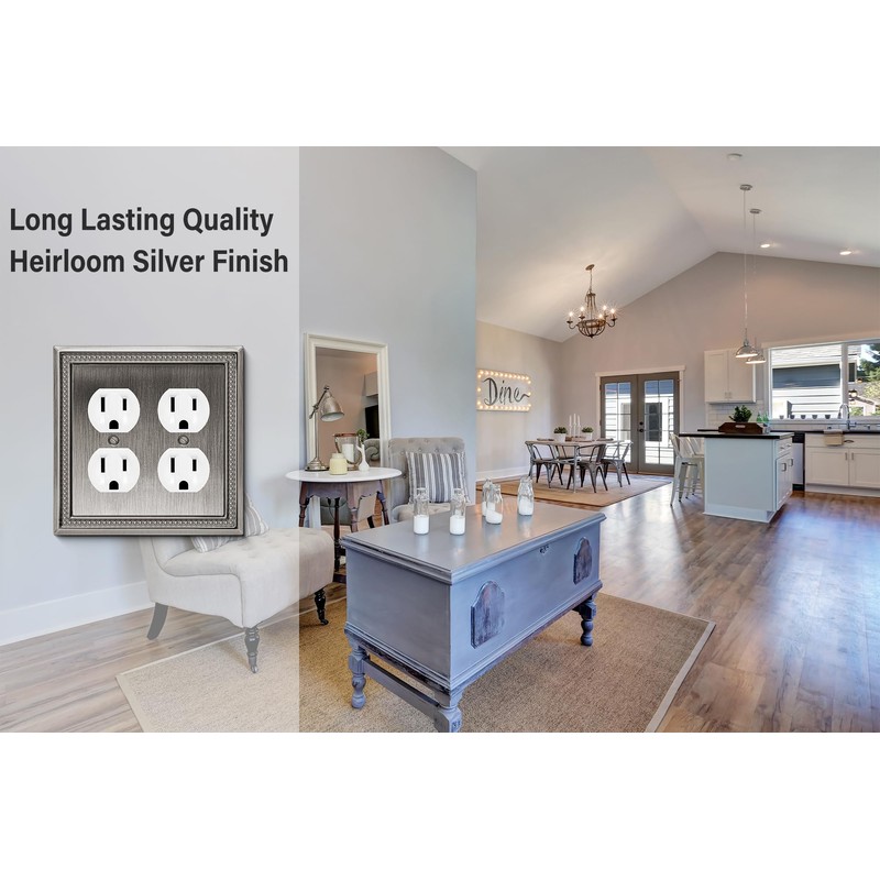 Henne Bery Sunken Pearls Decorative Wall Plate Switch Plate Outlet Cover (Double Duplex, Heirloom Silver)
