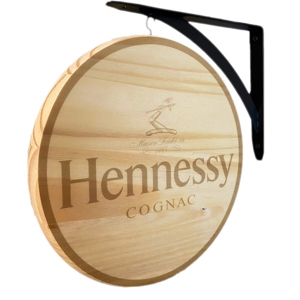 This solid wood doubled sided Hennessy pub sign is an eye catching addition to any home, bar, garage, etc. The sign comes with a black metal hanging bracket, screws and hanging hook. The sign has a diameter of 12 inches and is intended for INDOOR USE ONLY.