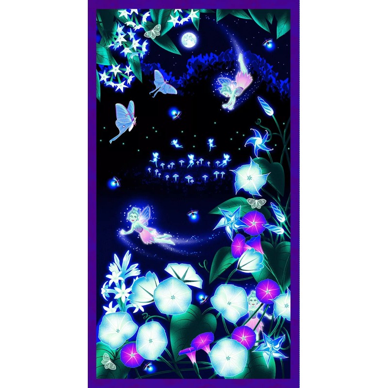 Henry Glass Magic Moon Garden Glow Panel Black Cotton Fabric By The Yard