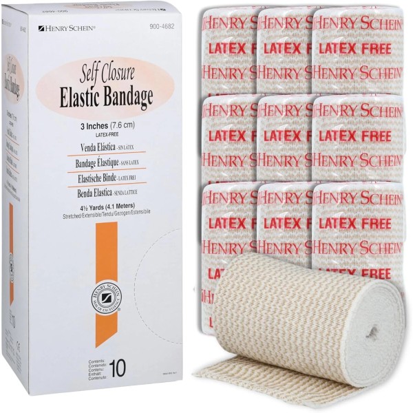 Henry Schein Self-Closure Elastic Bandage, 3" x 4.5 Yards, Tan, 3 x Yards (Box of 10)