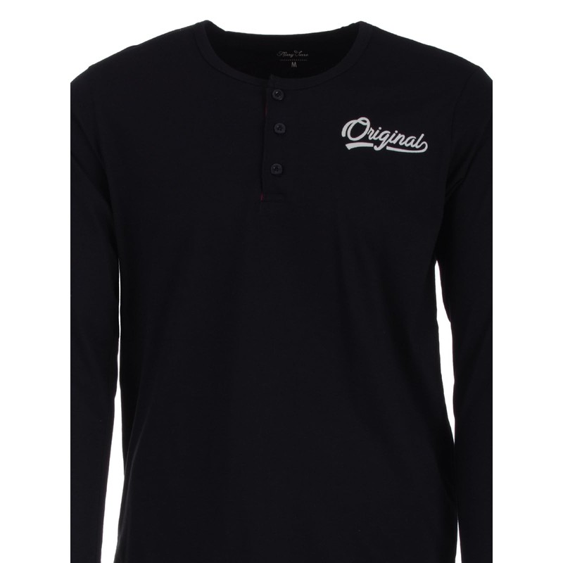 A men's pyjama with long sleeves provides comfort and warmth during sleep.