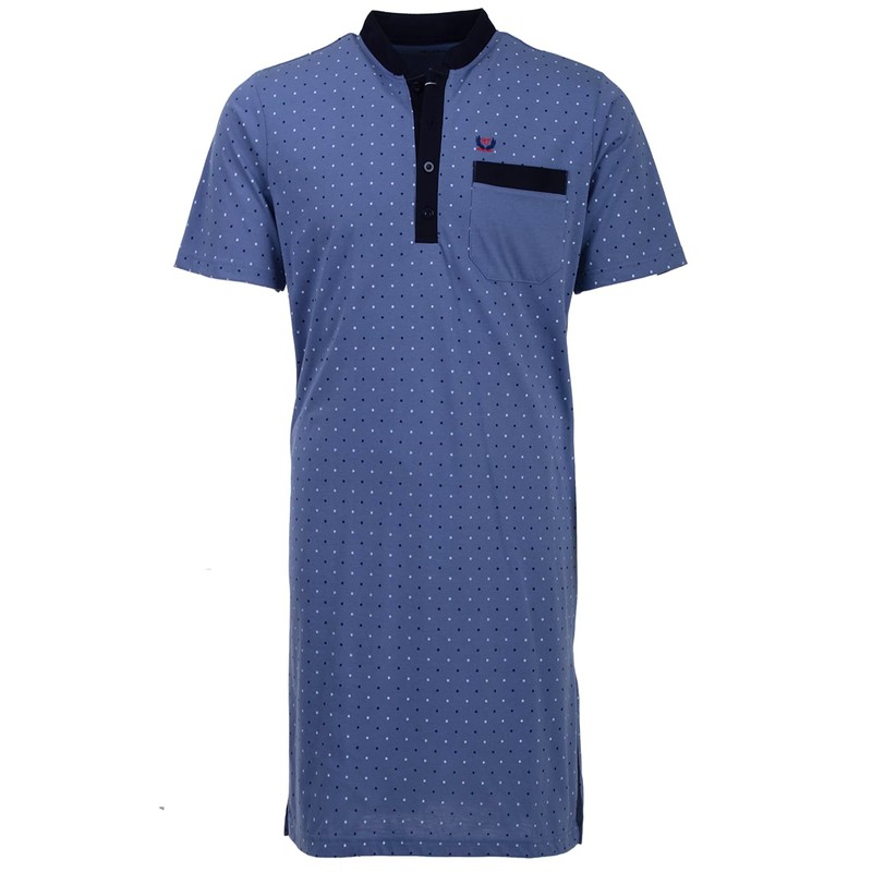 Henry Terre Men's Short-Sleeved Stand-Up Collar Nightdress with Dots, Chest Pocket, Button Placket, Size, blue, XL