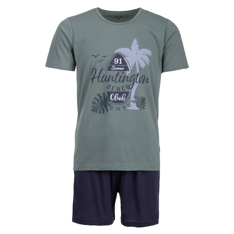 Henry Terre Men's Shorty Beach Pyjamas 2-Piece Set M-5XL Cotton Plus Size, Green, M