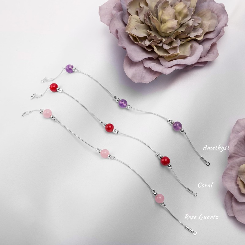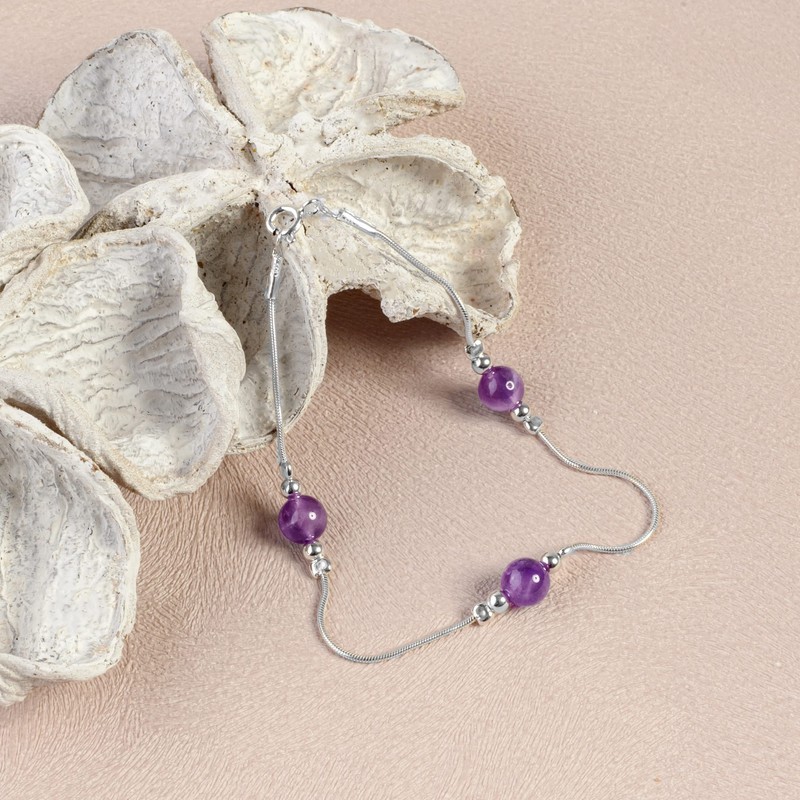 - BOHO CHIC: With vibrant pops of purple lilac colour, 3 amethyst beads sit snug on a silver chain bracelet, making this a summer style staple.