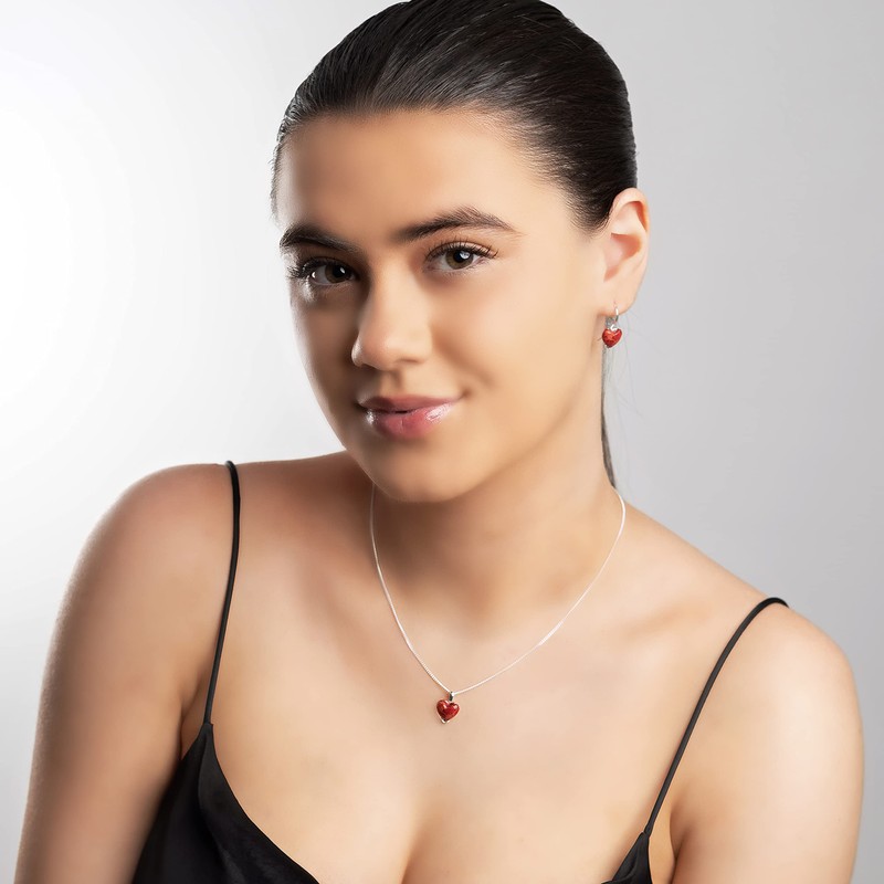 HENRYKA Miniature Heart Necklace in 925 Sterling Silver and Red Horn Coral | Love Heart Jewellery | Valentine's Gifts for Wife Girlfriend Mom