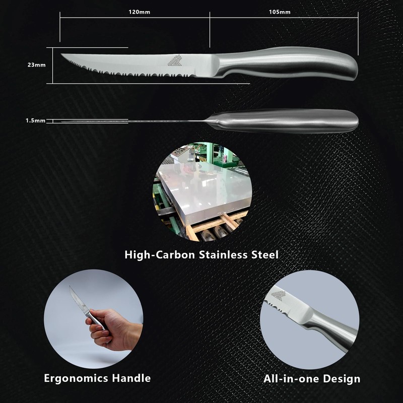 - The biggest highlight of the HENSOMG steak knife is that the blade has a special edge,which i call the moon edge. When using this steak knife to cut steak and bread,it makes it easier to cut steak and bread without taking up the meat. I believe the special blade will give consumers a different feeling.