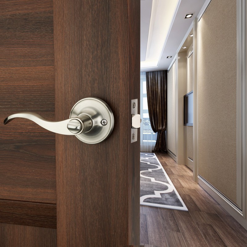1 Pack of HENYIN Wave Lever Keyed Entry Door Lock/Door Knob Hardware Handle and Closet Lockset, Silver Color, with Key,Right Hand(805SN-R)