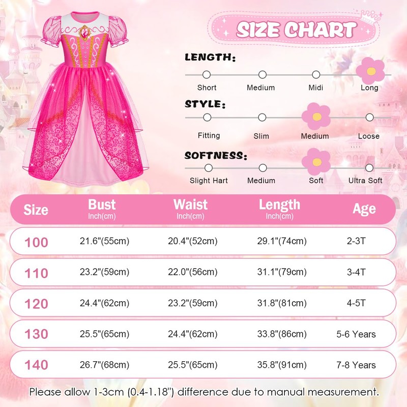 - Designed specifically for girls aged 2-8 years old Please check the size chart for detailed information
