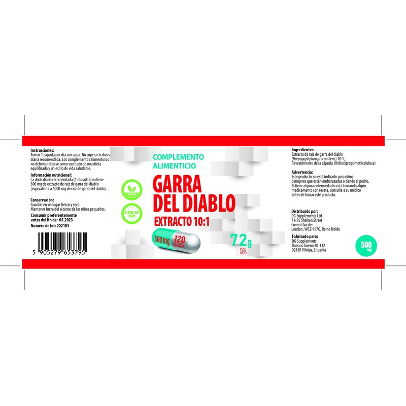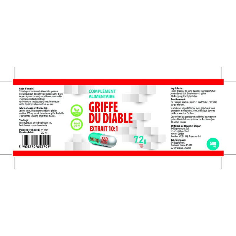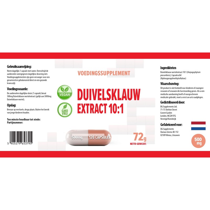 Product descriptionHepatica Devil's Claw 10:1 Extract (5000mg Equivalent) – 120 Vegan Capsules | High-Strength Joint & Anti-Inflammatory Support Support joint health, reduce discomfort, and promote flexibility with Hepatica Devil's Claw 10:1 Extract – a powerful herbal remedy traditionally used for natural pain relief, inflammation balance, and mobility support. Each serving delivers a high-strength 5000mg equivalent dose, standardized to a potent 10:1 Devil's Claw extract, ensuring maximum effectiveness and absorption. This vegan-friendly supplement is crafted with no fillers or additives, offering a pure and natural solution for joint comfort and mobility. Why Choose Hepatica Devil's Claw? High-Strength 5000mg Equivalent Per Serving – Delivers a potent 500mg of 10:1 Devil's Claw extract, providing maximum joint and inflammation support. Supports Joint Comfort & Mobility – Helps reduce stiffness, support flexibility, and promote long-term joint health. Powerful Natural Anti-Inflammatory – Contains harpagosides, known for their ability to regulate inflammation and support healthy joint function. Promotes Muscle Recovery & Physical Performance – Aids in reducing post-exercise discomfort and supporting faster muscle recovery. 120 Vegan Capsules – 4-Month Supply – A long-lasting supplement for daily joint and inflammation support. Pure & Natural Formula – No Fillers or Additives – Gluten-Free, Non-GMO, and free from artificial preservatives, allergens, and unnecessary ingredients. 3rd Party Lab Tested for Purity & Safety – Rigorously tested for quality, potency, and safety, ensuring a premium-grade herbal supplement. Manufactured in a GMP-Certified Facility – Produced under strict quality control standards for safety and reliability. The Benefits of Devil's Claw Supports Joint Health & Flexibility – Helps relieve joint stiffness and discomfort, promoting better movement and mobility. Natural Anti-Inflammatory Properties – Contains bioactive harpagosides that help regulate inflammation and ease muscle soreness. Aids Recovery & Physical Performance – May help reduce post-workout discomfort and support muscle relaxation. Traditional Herbal Remedy for Joint & Back Pain – Used for centuries as a natural alternative to synthetic pain relievers. Supports Long-Term Musculoskeletal Health – Helps maintain strong, flexible joints and muscles for active individuals and seniors. Who Can Benefit? Individuals looking for natural joint support & flexibility Those experiencing stiffness, aches, or mild discomfort Athletes & active individuals for post-exercise muscle recovery Anyone seeking natural inflammation relief Individuals looking for a high-strength, lab-tested Devil's Claw supplement Directions for Use Serving Size: 1 capsule per day with water Best Taken: With food for optimal absorption Do Not Exceed the recommended daily dose. Important Notes: Consult a healthcare professional before use if you are pregnant, nursing, taking medication, or have a medical condition. Not recommended for children unless advised by a healthcare provider.IngredientsDevil's Claw extract, stabilising agent - hydroxypropylmethyl cellulose (capsule shell ingredient)DirectionsAs a food supplement, take 1 vegan capsule per day preferably with a glass of water. Recommended daily intake (1 capsule) contains 500 mg (5000mg Equivalent) of Devils Claw 10:1 Extract. Each bottle contains 120 capsules. 4 Month supplySafety WarningDo not exceed the recommended daily portion. The supplements can not be used as a substitute for a diverse diet. Do not use in case of sensitivity to any of the product ingredients. Not suitable for children and pregnant or breastfeeding women. Keep away from the reach of children.