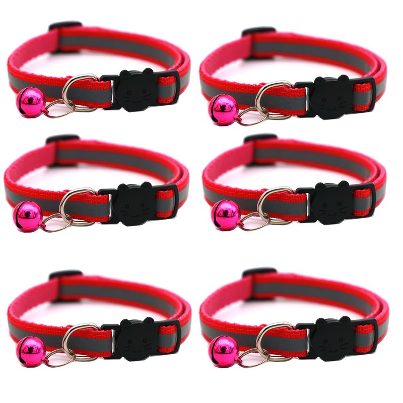 Hepplly 6-Pack Cat Collars Quick Release Reflective Kitten Collar with Bell (Dark Pink)