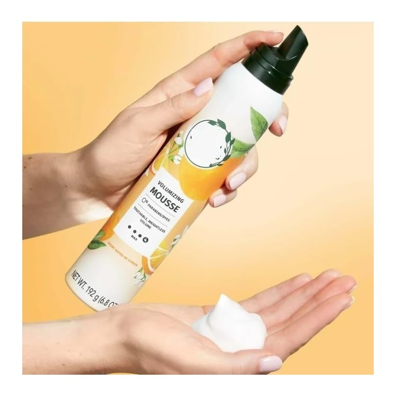 - HOW IT WORKS: Shake it, foam it, and work it through wet hair, then air dry or diffuse on low to build even more volume THE SCENT EXPERIENCE: Enjoy fresh notes of citrus in this mousse
