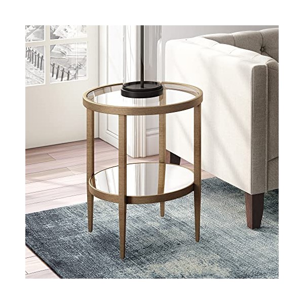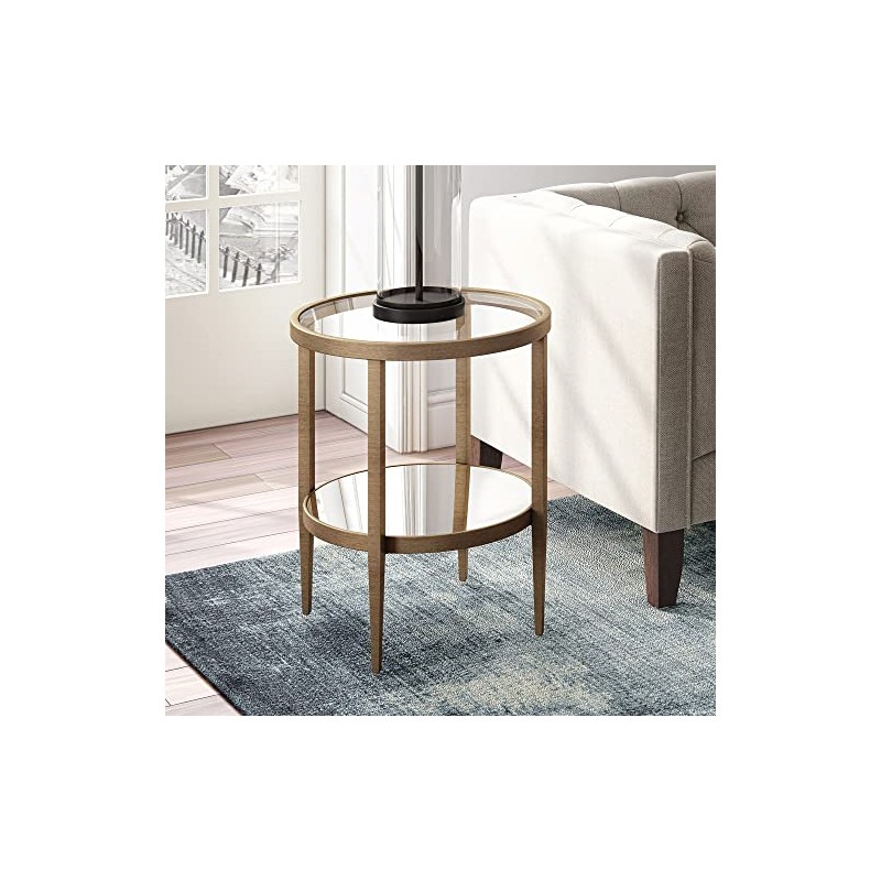 Hera 19.63'' Wide Round Side Table with Mirror Shelf in Antique Brass