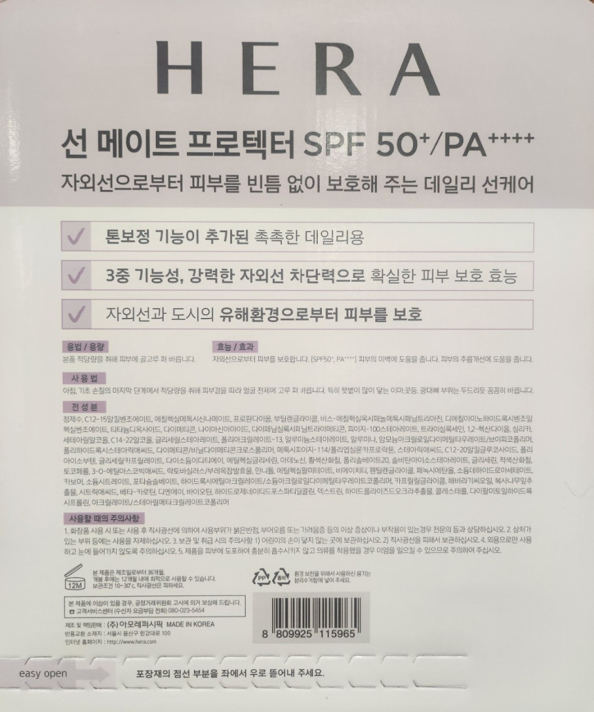 헤라 선메이트 프로텍터 50ml x 2개 톤업 메이크업 선크림
