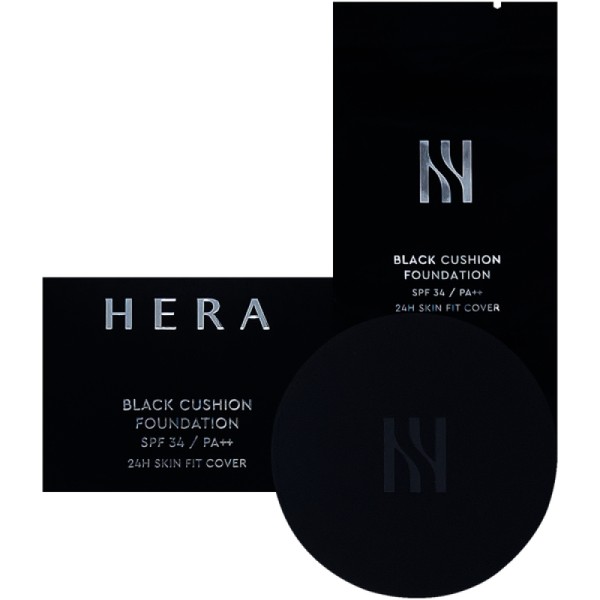 Hera Black Cushion (15g) + Refill (15g) - A compact cushion foundation with excellent coverage. / 헤라 블랙 쿠션 본품 15g+리필 15g 커버력좋은팩트 쿠션파운데이션