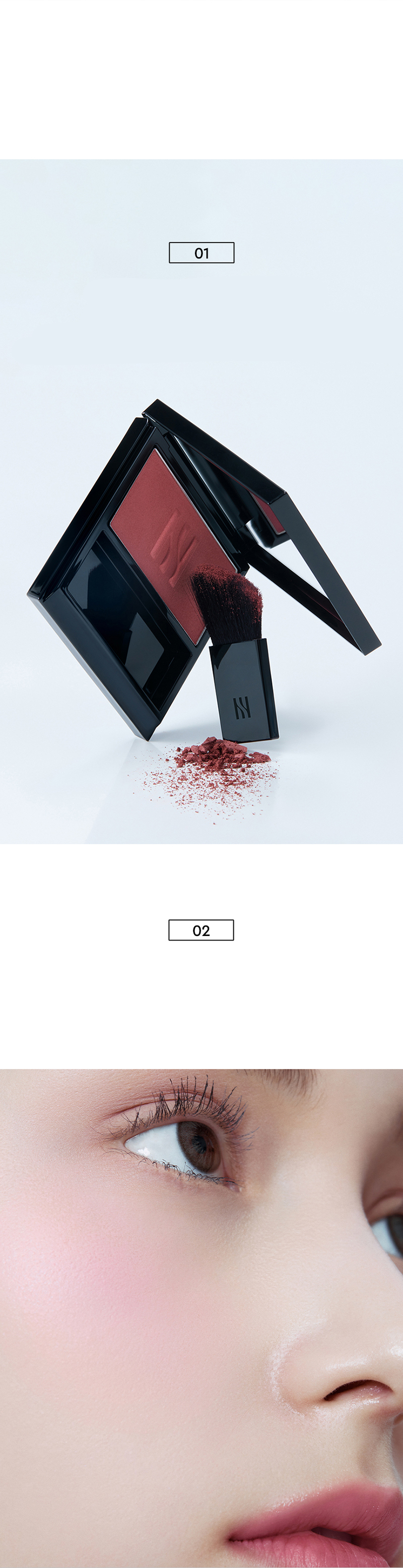 The watery shades and soft texture of the blush completes pretty liveliness. The essential shades and luxurious glitters maximize healthy skin expression. The clean vegan formula consists of skin-friendly ingredients only. Provides 3D effect and finish that maximize healthy skin expression. The compact size product is designed with an embedded luxury brush.
