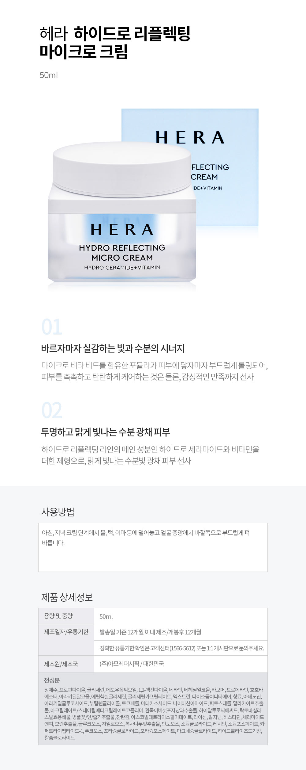 Hera [Half Club/Hera] Hera Hydro Reflecting Micro Cream 50ml moisture glow, single item / 헤라 [하프클럽/헤라]헤라 하이드로 리플렉팅 마이크로 크림 50ml 수분 광채, 단품