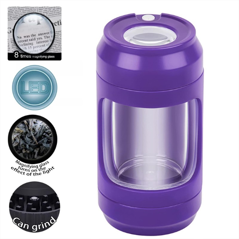 Herb Grinder Storage Jar with 8x Magnifying Lid, Light-Up Viewing, Fresh Keeping, and Portable Grinding (Red)