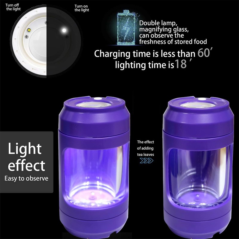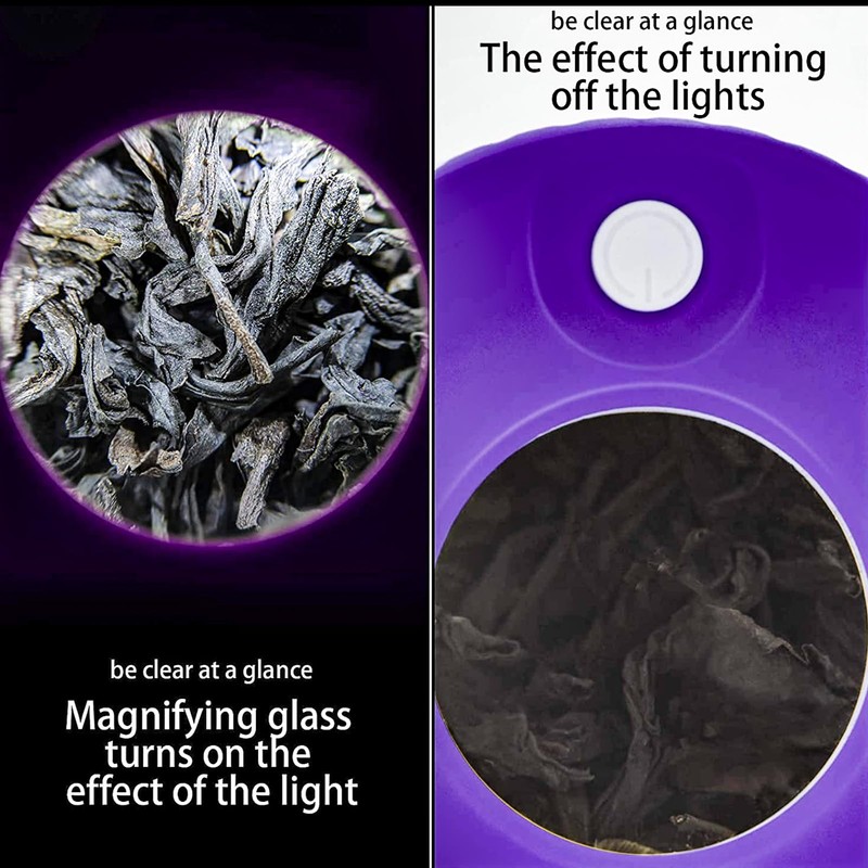 - ✅ Light & 8x Magnification: The LED light inside the storage jar allows you to inspect your contents in detail. Simply press the button three times to activate the light and long press to turn it off. The 8x magnifying lid ensures you can see everything clearly.