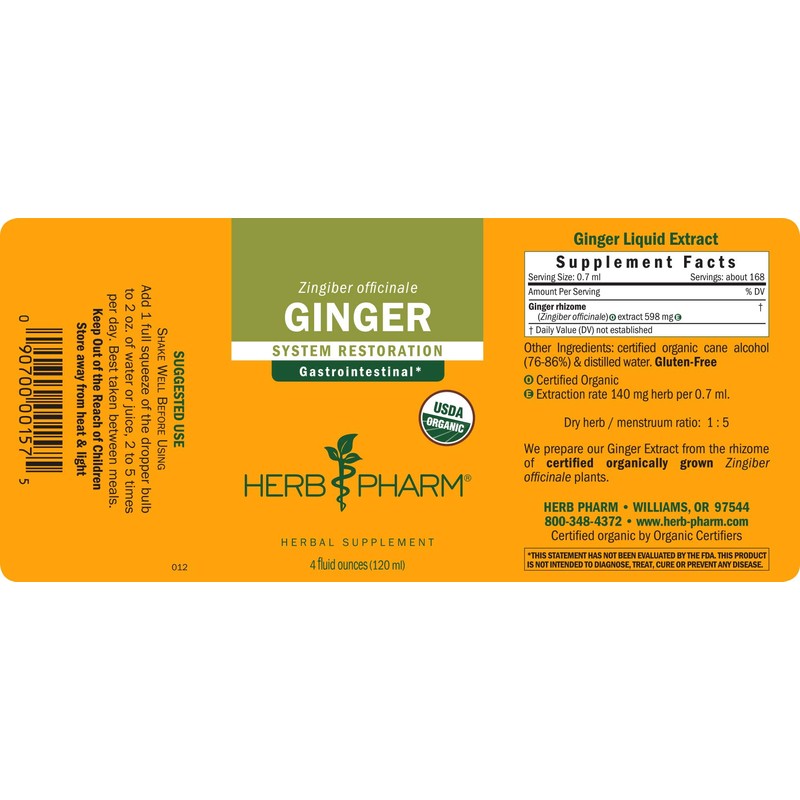 Herb Pharm Certified Organic Ginger Liquid Extract for Digestive Support - 4 Ounce