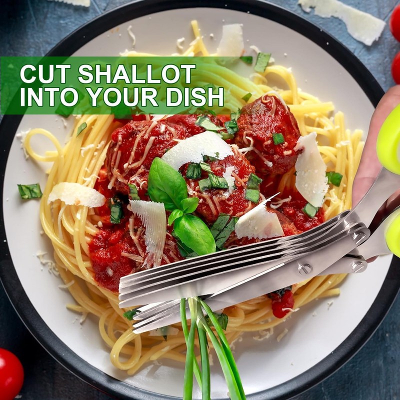 Herb Scissors, Shallot Scissors, Multipurpose 5 Blade Kitchen Herb Shears, Herb Cutter with Safety Cover and Cleaning Comb for Chopping Shallot Basil Chive Parsley