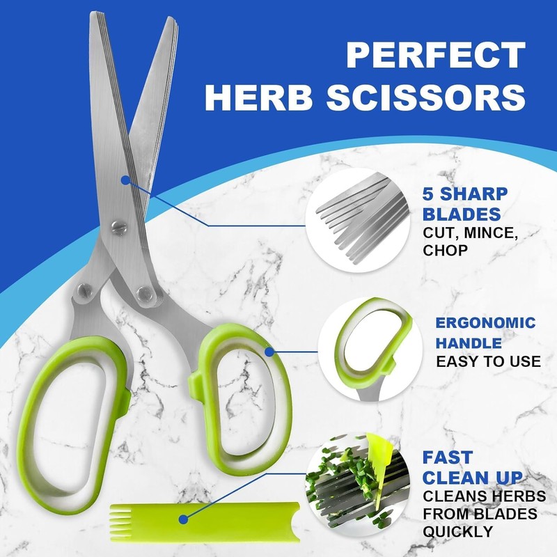 • 【Gift Perfection for Culinary Enthusiasts】: Gift perfection with our premium kitchen shears. Featuring 5 blades and a protective cover, these shears make an ideal gift for Christmas, Wedding Day, Mother's Day, Housewarming, and more. A thoughtful present, especially for cooks and herb lovers, ensuring they have the perfect tool for their culinary adventures