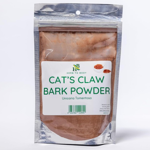 Herb To Body Cat’s Claw Bark Powder - Uncaria Tomentosa, Finely Ground Cat’s Claw for Tea, Smoothies, Herbal Blends, and Culinary Use, Resealable Pouch, 4oz