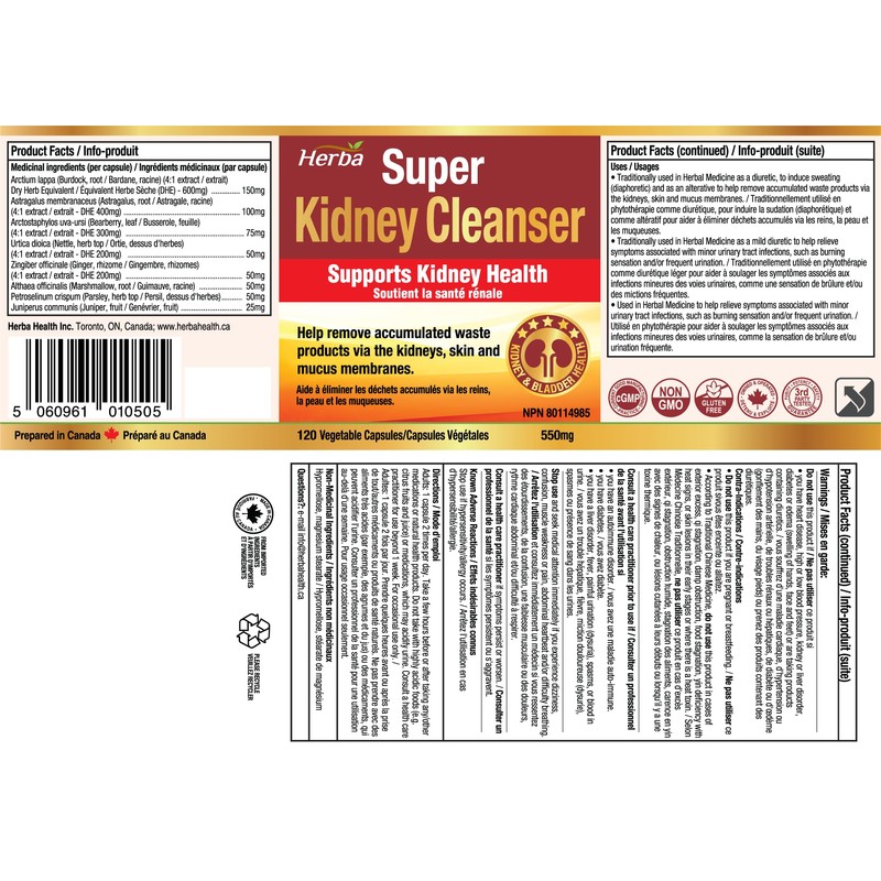 Herba Herba Kidney Cleanse Supplement – 120 Capsules | 8 Herbal Ingredients | Astragalus Root, Uva Ursi, Burdock, Juniper Berry, Nettle Leaf, Ginger, and More | Kidney Cleanser | Made in Canada