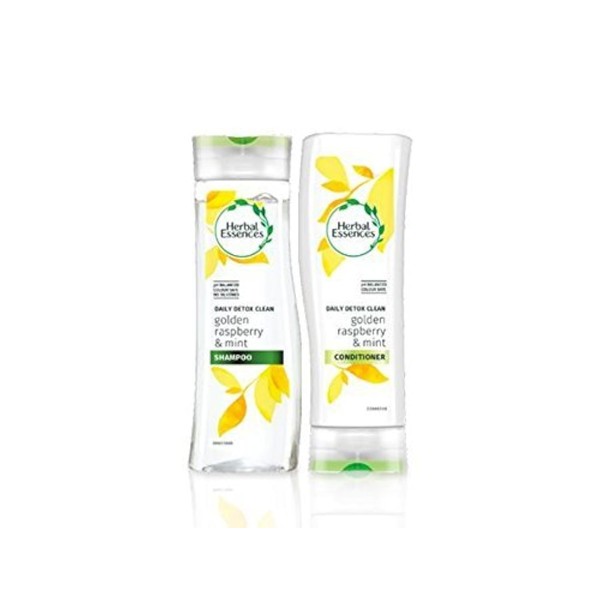 Herbal Essences Daily Detox Shine Shampoo and Conditioner with Golden Raspberry and Mint. Bundle with Exclusive Beauty Tips.