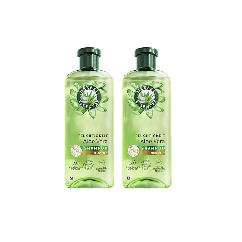 Herbal Essences Feuchtigkeits Shampoo mit Aloe und Jasminduft 350ml. Von sehr trockenem zu glänzenden Haar, Ohne Silikone, ohne sulfatierte Tenside, Mit Inhaltsstoffen natürlichen Ursprungs, Vegan