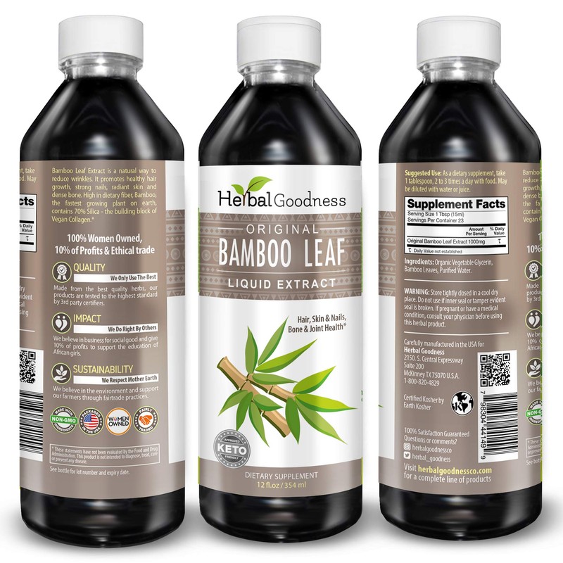 - How Our Bamboo Liquid Extract Works: Bamboo contains the highest amount of silica of any plant. Silica is the building block of collagen and biotin which helps to build up keratin in the body. Keratin is vital for healthy hair, skin, nails. It supports joint and bone health. Bamboo is rich in antioxidant, MSM, Vitamins B2, B12, C & K, Zinc, Copper, Magnesium, Calcium, Silica, Potassium, Flavonoids, Polyphenols, and Amino Acids. This herbal tea is sure to meet almost all your beauty needs