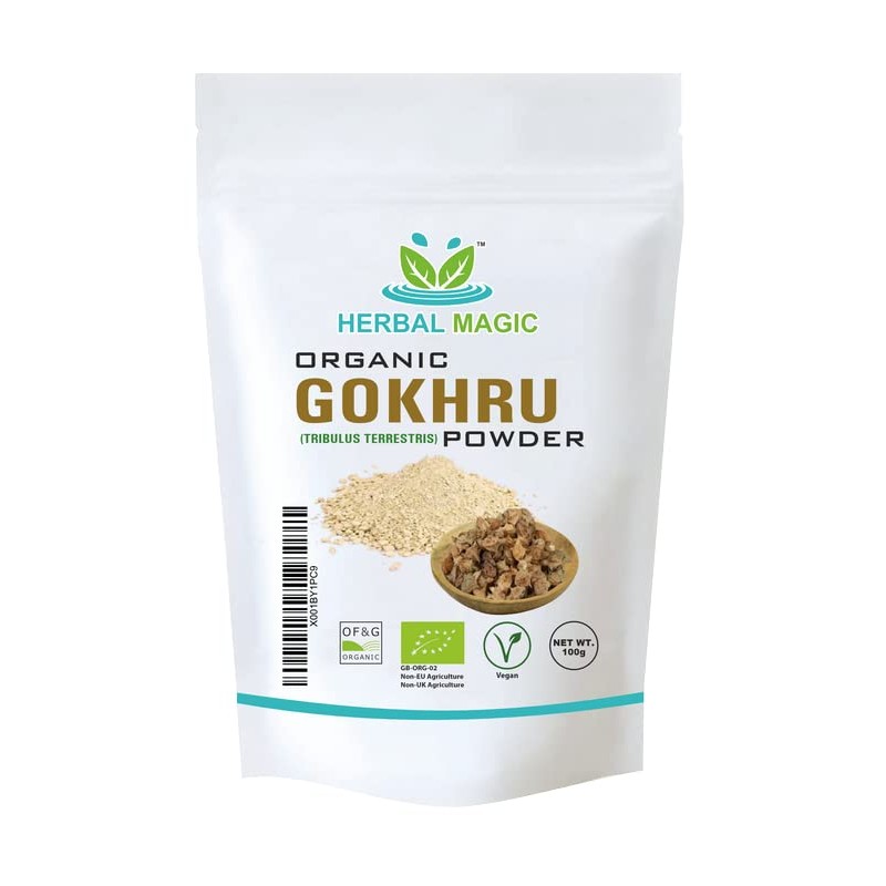 Herbal Magic's Organic Terrestris Powder/Gokhru Powder - Revered Herb in Ayurveda - Free from Fillers Artificial Colour Flavour & Preservatives of&G UK Organic Certified