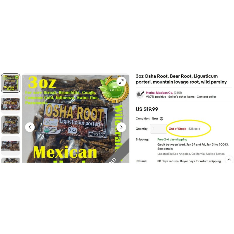 Herbal Mexican 3oz Osha Root, Bear Root, Ligusticum porteri, mountain lovage ...