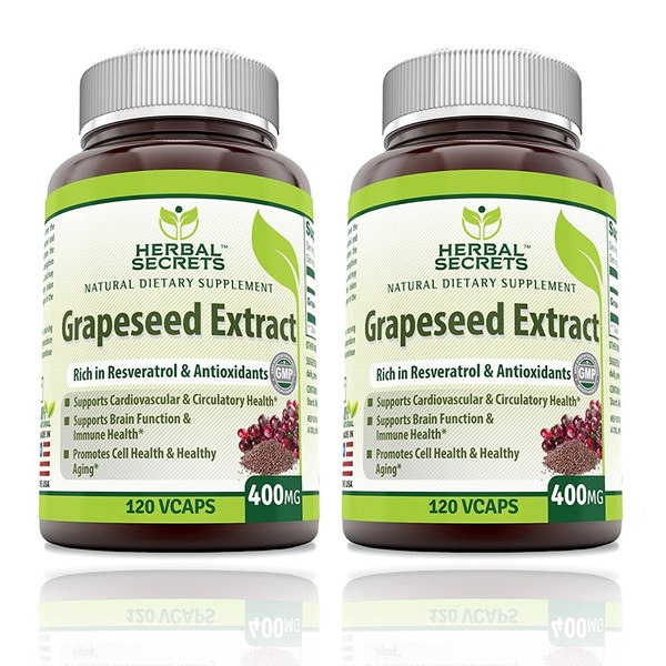 Herbal Secrets Grapeseed Extract 400 mg 120 Veggie Capsules Supplement | Non-GMO | Gluten Free (120 Count | Pack of 2)