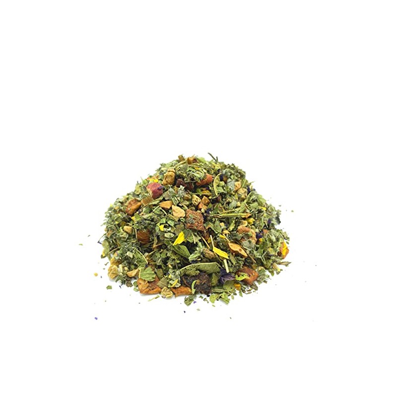 Lush green meadows covered by purple and yellow flowers... this reflects the look of this herbal tea blend wonderfully. Sour and sweet citrus notes with the typical taste of grapefruit combine to create a sparkling fresh pleasure. Sweet blackberry leaves and plenty of ginger round off the taste excellently.