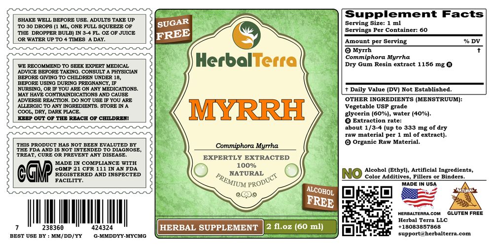 Herbal Terra LLC Myrrh (Commiphora Myrrha) Tincture, Organic Dried Gum Resin Liquid Extract - 4 Fl.Oz.Alcohol-Based