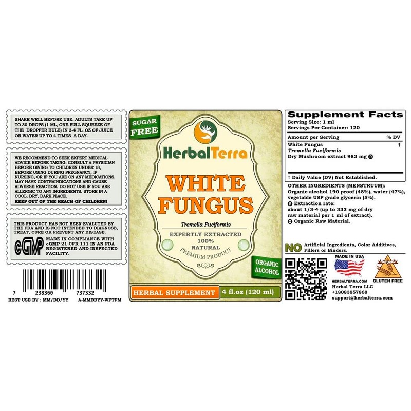 Herbal Terra LLC White Fungus (Tremella Fuciformis) Dried Mushroom Liquid Extract, Certified Organic 4 oz