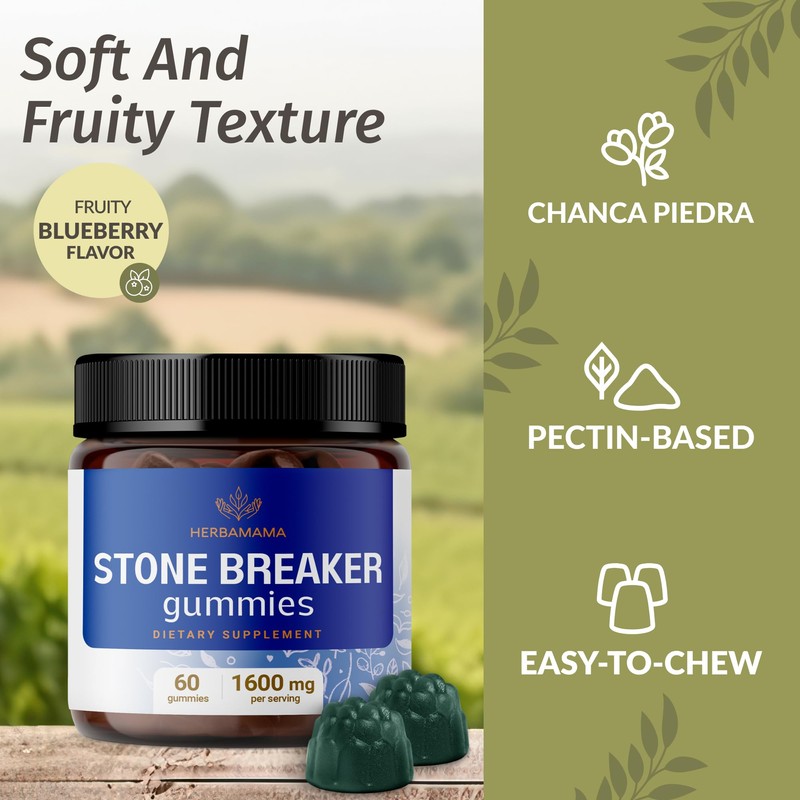 HERBAMAMA Chanca Piedra Stone Breaker Gummies - 1600mg Chanca Piedra for Urin...