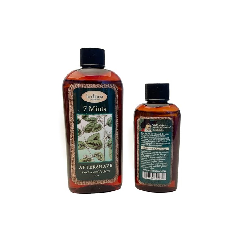 Herbaria 7 Mints Aftershave All-Natural with Essential Oils. 4 oz. Soothes & Protects. Enjoy Our Soaps and Other Skin-Friendly Products.