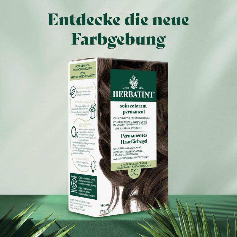 Herbatint Permanent Hair Dye Gel 5C Light Ash - Chestnut Brown - 170 ml I No Ammonia, Optimal Grey Hair Coverage I Tested for Sensitive Skin with 8 Plant Extracts
