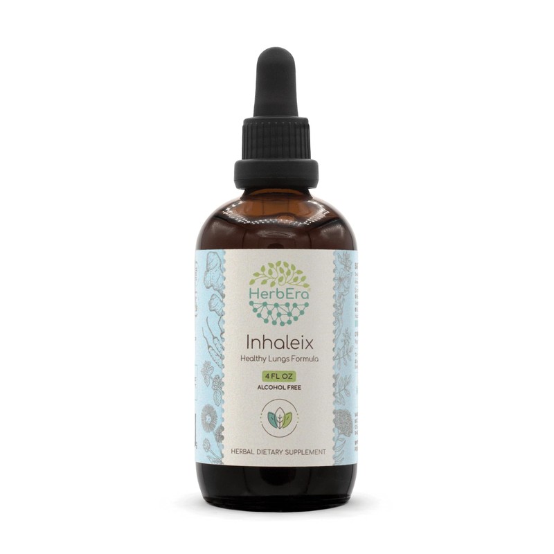 HerbEra Inhaleix B120 Alcohol-Free Extract Tincture, Elecampane Root, Horehound Herb, Marshmallow Root, Pleurisy Root, Ginger Root, Licorice Root, Cordyceps Mushroom. Healthy Lungs Formula 4 Fl Oz
