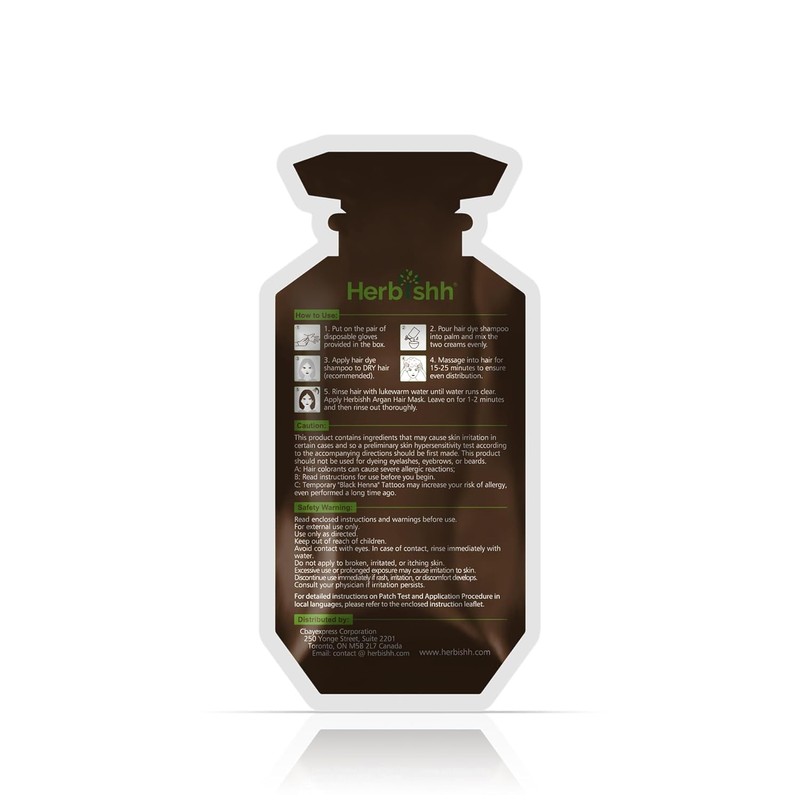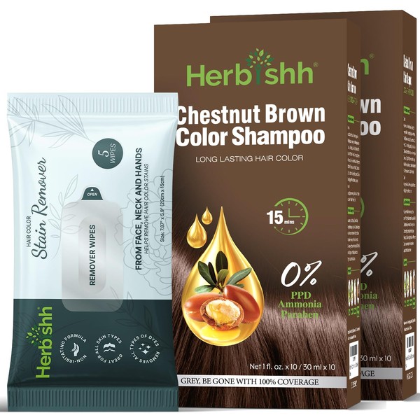 Herbishh Chestnut Brown Hair Dye Shampoo with Wipes | Natural Gray Hair Coverage | PPD-Free 3-in-1 Formula | 20 Travel Size Pack of 2 | 10 Sachets + Argan Mask + 5 Wipes