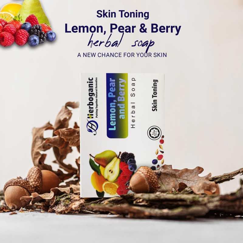 - Soothes and rejuvenates skin: Herboganic’s Lemon, Pear and Berry Herbal soap is infused with the essence of these fruits which gently cleanse and revitalize your skin, leaving it feeling toned and refreshed.