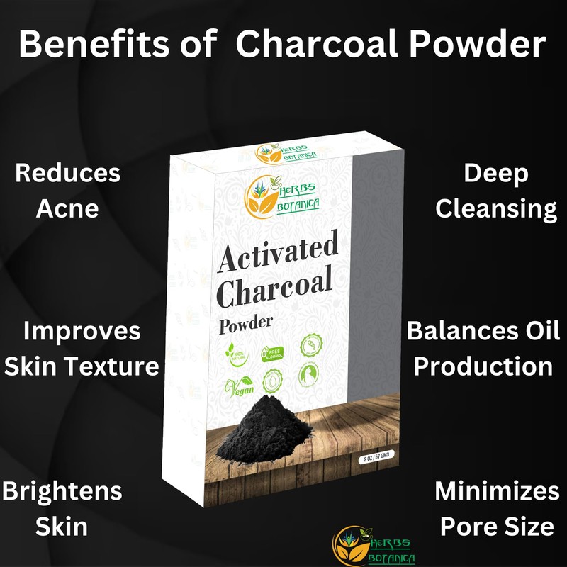 Herbs Botanica Activated Charcoal Powder – 100% Food Grade, Natural Detoxifier for Teeth Whitening, Digestive Health, Face Masks, DIY Skincare, Detox Drinks & Bug Bite Relief – 2 oz Resealable Pack
