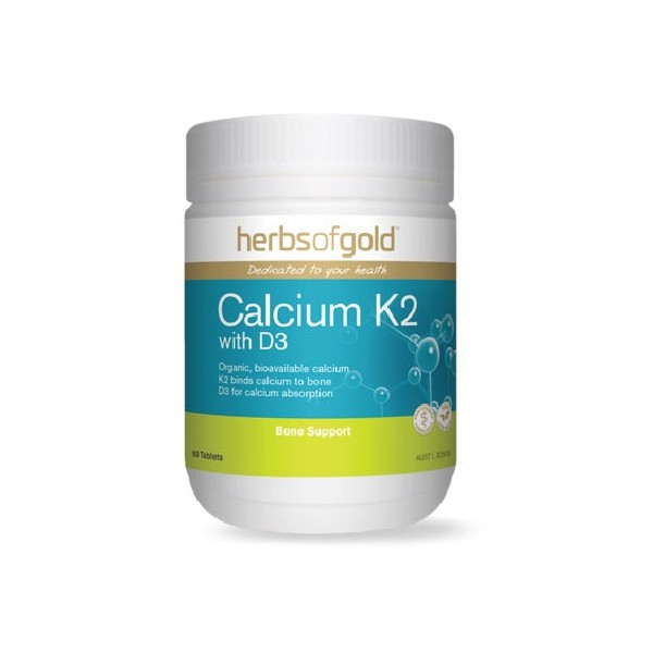 - Herbs of Gold Calcium K2 with D3 contains two organic, highly bioavailable forms of calcium; Aquamin™ derived from highly mineralised seaweed and calcium citrate.