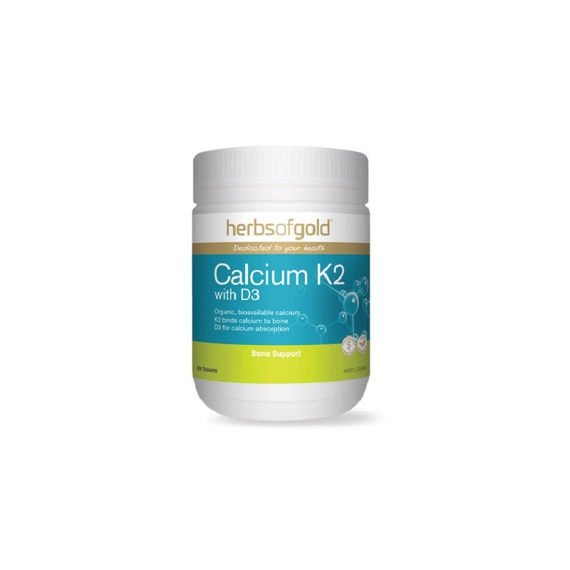 Herbs of Gold Calcium K2 with D3 is an advanced, state-of-the-art bone health formula that contains two forms of bioavailable calcium and vitamins K2 and D3 for optimal bone strength.
