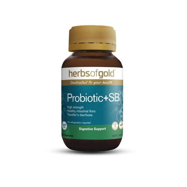 Herbs of Gold Probiotic + SB is a room stable probiotic complex that restores healthy intestinal bacteria and helps maintain healthy digestive function.