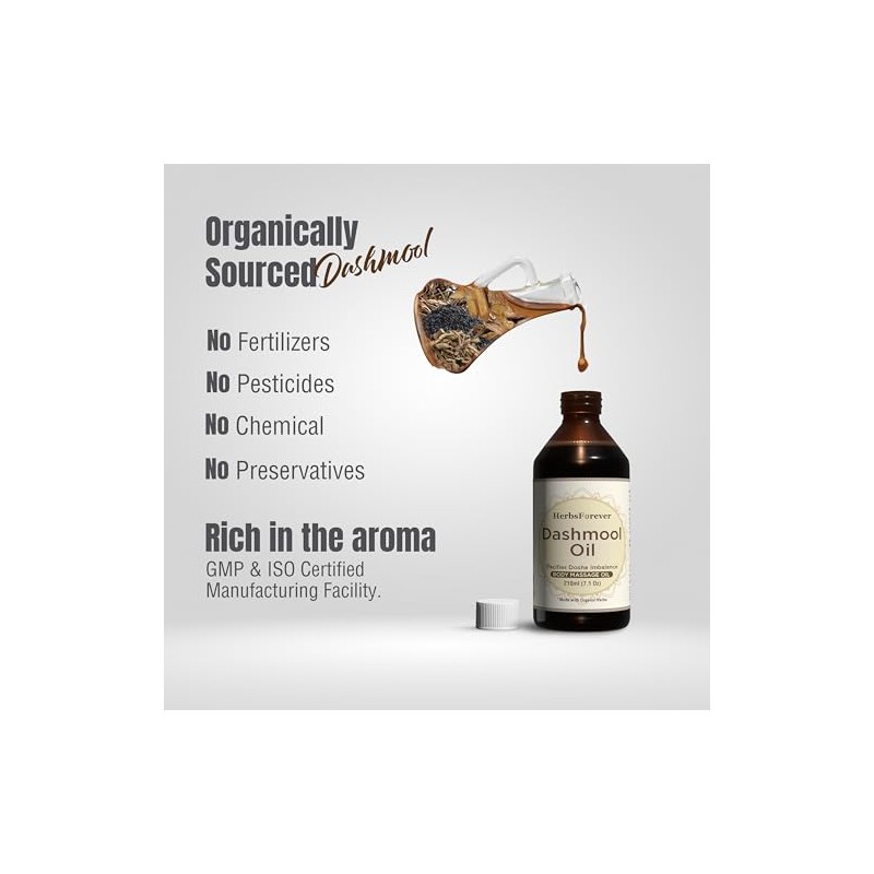 Herbsforever Dashmula Oil | Ayurvedic Massage Oil for Vata Balance, Non-GMO | Vegan, Natural Herbal Formula, Soothes & Nourishes Skin | Traditional Remedy, 7.11 fl oz (210 ml)