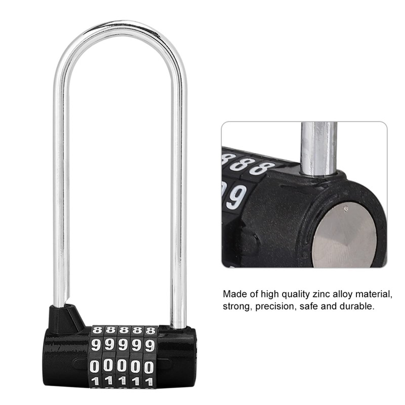 HERCHR 5 Digit Combination Padlock with Long Shackle and Code for School, Locker for Gym Employees, Fence (Black)